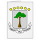 Armoiries de Guinée équatoriale. Le blason national de la Guinée équatoriale a été adopté le 21 août 1979. Cette armoiries montre un bouclier gris, qui contient un arbre. Cet arbre est un coton en soie, ou ce qu'on appelle "l'arbre de Dieu". C'est là que le premier traité a été signé entre l'Espagne et le dirigeant local. Au-dessus du bouclier, il y a six étoiles à six branches. Ils représentent le continent et les cinq îles principales.