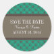 Trait tendance et chic Fancy Lattice Save the Date Stickers avec un cercle élégant et un motif clouté en diamant sur un arrière - plan vert émeraude dynamique avec une large bordure brune bicolore. Ces élégants stickers de date sont parfaits pour annoncer votre mariage moderne. Facile à customiser, il suffit d'ajouter les détails de votre mariage dans les champs de texte fournis. Cliquez sur "Customiser" pour trouver d'autres options de personnalisation.