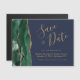 Cette élégante sauvegarde la carte magnétique date dispose d'une bordure d'aquarelle vert émeraude bordée de parties scintillant en faux or. Le texte personnalisable combine écriture manuscrite couleur or, cuivre et polices italiques sur un arrière - plan bleu marine.