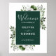 Cet élégant panneau d'accueil fleuri vert émeraude peut être personnalisé avec vos informations dans la typographie moderne. Conçu par Thisisnotme©