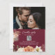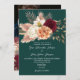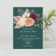 Annoncez votre grande journée dans le style avec cet élégant faire-part de mariage boho, avec des flancs bordeaux, ivoire et pêche à l'aquarelle sur un riche arrière - plan vert émeraude. Comprend un code QR pour un accès facile au site Web RSVP ou mariage, et un espace pour une photo préférée au dos. Parfait pour les couples modernes qui souhaitent une fête romantique, rustique ou automnale. Pour des personnalisations ou de l'aide, n'hésitez pas à me contacter à : bpkolman@gmail.com