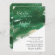 Etonnante invitation vert émeraude aquarelle avec accents de parties scintillant or et des coups de pinceau. Cet élégant invitation de mariage avec calligraphie manuscrite saura séduire vos invités !