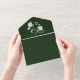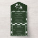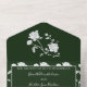 Invités Invitations à votre prochain mariage avec un Rose vert émeraude All in One Wedding Invitation. Le design Invitation présente des roses blanches et un arrière - plan carrelé assorti avec une carte RSVP perforée. Personnalisez avec les noms du marié et de la mariée ainsi que la date et l'emplacement du mariage. Papier à lettres mariage supplémentaire disponible avec cette conception aussi.
