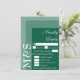 Simple carte de mariage chic RSVP avec choix de repas pour les mariées qui ornent leurs cérémonies en vert émeraude moderne. La suite mariage chic a une police blanche moderne avec des initiales monogramme sur le côté.