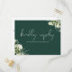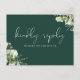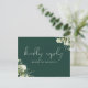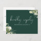 Une carte RSVP chic demande une chanson élégante avec une végétation fleurie et une typographie chic sur un arrière - plan émeraude. L'inverse vous donne vos détails et une demande amusante de chant invité. Conçu par Thisisnotme©