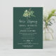Célébrez votre amour avec cette élégante invitation de réception de mariage à la verdure émeraude. Avec des feuilles de couleur vert foncé et de l'eucalyptus aquarellés, ce design allie le charme rustique à une ambiance bohemienne moderne de forêt. Les cartes de réponse sont disponibles séparément, ou vous pouvez inclure les détails de réponse au dos de la carte.