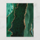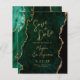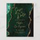 Ce mariage élégant sauvegarder la carte date dispose d'une image arrière - plan d'aquarelle vert émeraude parée de parties scintillant en faux or. Le texte personnalisable combine écriture manuscrite moderne couleur or, cuivre et polices italiques. L'envers présente un design coordonné vert émeraude et or agate.