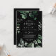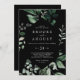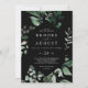 Cette faire-part de mariage décontractée couleur vert émeraude est parfaite pour un mariage boho. Le design élégant et rustique présente des feuilles d'aquarelle vert foncé moody et des eucalyptus aux tons bohèmes modernes.