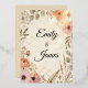 Celebrate love in elegant style with this stunning boho watercolor wedding invitation featuring Emily & James. Delicate peach ranunculus blooms, lush eucalyptus leaves, queen anne's lace, and ferns frame the names in a romantic, rustic lattice design on a soft cream background. Perfect for save-the-date cards, engagement announcements, or rehearsal dinner invites.