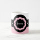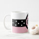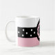Tasse de nom personnalisable. Distinctive Pink and White Dotted Mug par 369Design, et 369. Personnalisez-le. Ajoutez un nom ou un monogramme. La couleur et le style du texte, ainsi que la couleur et le style de la tasse peuvent être modifiés.