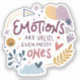Celebrate emotional honesty with this “Emotions Are Valid, Even Messy Ones” vinyl sticker. Perfect for laptops, water bottles, cars, and planners, this durable, waterproof decal embraces mental health awareness and self-compassion. Designed with warm, inviting typography and soft colors, it encourages acceptance of all feelings, messy or not. Easy to apply and remove, it’s a thoughtful gift for anyone on their journey to emotional well-being.