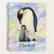 Penguin parent adulte avec poussin bébé. Pingouins mignons de l'Aquarelle Antarctique. Les pingouins empereurs sont de très beaux oiseaux. art numérique Aquarelle peinture d'adorables pingouins de mère ou père avec bébé. Avec des éclaboussures de couleurs dans le violet profond/bleu, vert cyan/bleu, jaune et un peu d'orange. Prêt à être personnalisé, il suffit d'ajouter un nom ou de le supprimer.