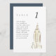 Cartes graphiques chic avec un tableau en aquarelle de l'Empire State Building de New York, portant le numéro d'une table mariage. L'association de l'aquarelle peintre et de la typographie chic est un joli combo amusant.