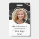 Employé sur mesure, Photo, Code barre, Logo, Nom Badge avec agate noir arrière - plan Vous pouvez customiser ce modèle en ajoutant votre photo, nom, profession, logo de votre entreprise et code à barres. Design simple en argent et blanc avec cadre photo circulaire