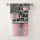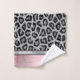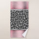 Serviette empreinte de léopard en argent exotique et en faux-fourrure noire sertie d'une gaine métallique brossée rose sur les bordures des serviettes pour le contraste. Vibes chic animal glam.