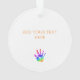 Empreinte de main arc-en-ciel à l'aquarelle en rouge, rose, violet, bleu, vert, jaune, orange avec AJOUTEZ VOTRE PROPRE TEXTE personnalisé en orange au dos. Facile à personnaliser le texte, la couleur du texte. Joli souvenir pour TOUT âge. Coloré, Moderne, Amusant. Mélangez et associez toute la collection d'empreintes de main de TMCdesigns.