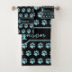 Ajoutez de l'élégance et décorez votre salle de bain avec ces élégants empreintes de pattes de parties scintillant bleu turquoise et des serviettes de bain monogrammes et accessoires de bain personnalisés. Ce design empreinte de patte bleu et noir est tendance, élégant et préféré. Un must pour chaque chat ou mère de chien, animal, chat et amoureux des chiens. Magnifique cadeau de Noël ou d'anniversaire personnalisé. DROIT D'AUTEUR © 2020 Judy Burrows, Black Dog Art - Tous droits réservés