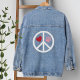 Veste denim amoureux des animaux, ornée d'un panneau de paix blanc, d'un coeur rouge et d'un empreinte de patte rose.