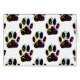 Un motif d'empreintes de pattes de chiens avec des confettis un serpentins. Animaux de compagnie idée de décoration festive.