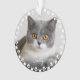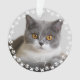Un joli ornement personnalisé pour amoureux de les chats. Ce design comprend une photo et le nom de votre ami furieux à l'avant et à l'arrière avec un cadre rond mignon et moderne d'empreintes de pattes et de coeurs. Ce sera parfait comme cadeau personnalisé.