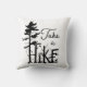 Un oreiller à jetons avec un design de typographie nature en silhouette avec les mots "Prenez une randonnée", agrémenté d'un pin, d'un oiseau et d'une pelouse. Un grand cadeau pour les randonneurs et autres personnes de l'extérieur!