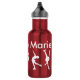 Personnalisé avec votre nom, bouteille d'eau de patineurs artistiques en blanc et ROUGE