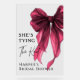 Accueillez vos invités avec style avec ce panneau de bienvenue en acrylique « She’s Tying The Knot » (C'est elle qui fait le nœud) à ruban rouge, conçu pour sublimer les enterrements de vie de jeune fille, les fêtes de fiançailles, les célébrations de bachelorette et les événements du week-end de mariage. Avec son motif chic de ruban rouge, sa typographie raffinée et sa finition acrylique transparente élégante, ce panneau crée une déclaration moderne et pourtant romantique dès l'arrivée des invités. Parfait pour les mariées qui aiment l'élégance classique avec une touche contemporaine, ce panneau de bienvenue en acrylique se photographie magnifiquement et complète les décors de mariage minimalistes, rouge et blanc, à thème ruban et modernes. Conçu pour vous par Evco Studio www.zazzle.com/store/evcostudio