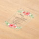 Invitation en acrylique, Taille : 12,7 cm x 17,8 cm, Style : Acrylique transparent, Coins : Arche, Impression : Numérique, Épaisseur : Standard (15 mil), Enveloppes : Aucun