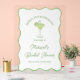 Accueillez vos invités à votre fête de mariage avec ce panneau ludique « Margs et Matrimony », parfait pour une fête festive ou une célébration sur le thème de la tequila. Avec un verre à margarita dessiné à la main, une bordure ondulée et des accents de vert citron vert acidulé, ce panneau de bienvenue éditable donne le ton pour une fête à la fois chic et coquine.