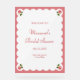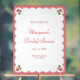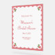 Accueillez vos invités avec ce panneau de bienvenue pour une baby shower rose élégant et sophistiqué. Caractérisé par de charmantes illustrations de boutons de rose dans chaque coin, une bordure blanche festonnée et un fond rose, ce design ajoute une touche romantique à votre célébration. Les polices sérif et script élégantes donnent une touche classique, ce qui en fait un choix parfait pour les fêtes de jardin, les baby showers sur le thème du thé ou tout événement célébrant l'amour et la beauté. Personnalisez avec le nom de la mariée, la date et le lieu pour un détail charmant et personnalisé.