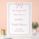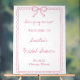 Un panneau de bienvenue fantaisiste et raffiné en rose tendre, mêlant le charme parisien à une romance sans effort. Le nœud dessiné à la main et la bordure festonnée dégagent une touche d'élégance féminine, parfaite pour une Love Fancy, une Old Money ou une fête prénuptiale minimaliste moderne. Personnalisez avec le nom de la mariée et les détails de l'événement pour une touche finale ultra-chic.