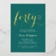 Cette invitation élevée à la fête du 40e anniversaire pour l'élégant et fabuleux 40quelque chose. Un vert émeraude riche associé à une feuille d'or "quarante" prépare le terrain pour tous les détails de la célébration de votre anniversaire.