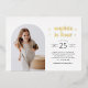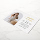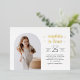 Une invitation d'anniversaire moderne avec votre propre photo en forme d'arcade. Le texte du titre est imprimé en feuille d'or véritable.