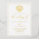 Impressionnez vos invités avec l'élégance intemporelle de cette conception d'invitation de mariage de plage REAL GOLD FOIL, avec une coquille de pétoncle en haut, élégante calligraphie script, et un cadre autour du bord.