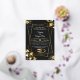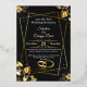 Make a dramatic statement with this truly glamorous wedding invitation. This design features a rich black background contrasted beautifully with luxurious metallic gold floral elements and a bold geometric frame. The luxurious look is completed by two elegant interlocking wedding rings at the bottom. The strong contrast and deep colors make this a perfect choice for formal, evening, or black-tie events. All text and details are fully editable, including the names, date, and RSVP information. Look through the collection for matching stationery to complete your opulent wedding suite.