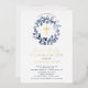 Beautiful Gold Foil First Communion invitations featuring a soft blue leaf wreath and cross set on a white background. Flip our invitation over to view a coordinating back for an extra special touch. Visit our shop to view our entire leaf collection.