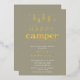 Voici notre délicieuse invitation de baby shower en feuille d'or "Happy Camper", parfaite pour célébrer l'arrivée de votre petit. Cette charmante invitation présente un thème de camping fantaisiste, avec des illustrations d'arbres, de lune et d'étoiles. Que vous planifiez un baby shower sur le thème de l'extérieur ou que vous aimiez simplement l'esthétique du camping, notre invitation "Happy Camper" est sûr d'impressionner vos invités et de préparer le terrain pour une célébration délicieuse.