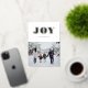 Cette élégante carte de fêtes d'hiver avec feuille d'or véritable présente votre photo préférée et un message de Joie en or sur fond blanc avec une touche suédoise. Ajoutez une autre photo et un message plus long au verso pour plus de détails personnalisés.