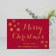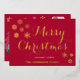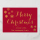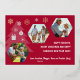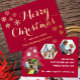 Élégante carte de Noël pour photo de famille avec véritable feuille d'or, fond rouge avec une typographie dorée élégante "Joyeux Noël" et trois photos de famille, facilement personnalisable avec les vôtres.
