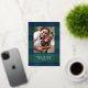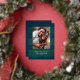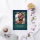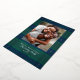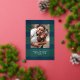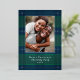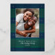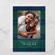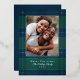 Élégant motif à carreaux simple bleu et vert avec photo de famille et accents de feuille d'argent véritable. Personnalisez avec votre nom et votre message.