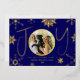 Cette carte de vœux présente un fond bleu foncé avec des flocons de neige qui tombent, votre texte personnalisé et le mot "Joie" en véritable feuille métallique. Le verso de la carte présente des flocons de neige blancs qui tombent et un texte qui dit : "Nous vous souhaitons paix et joie pendant cette période des fêtes et tout au long de la nouvelle année". Ajoutez facilement votre photo (obligatoire) à l'intérieur de la lettre "O" et modifiez ou supprimez le texte en cliquant sur "Personnaliser ce modèle".