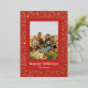 Cette carte de vœux plate présente une seule photo encadrée d'une ligne de couleur unie autour de la photo et d'un cadre à motif avec des feuilles de pin.