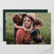 Carte de vœux avec feuille métallique Joyeuses Fêtes écriture moderne. Au verso, une deuxième photo et un message sincère de la famille. Cliquez sur personnaliser pour adapter ce modèle avec vos photos et détails.