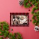 La conception est composée d'un motif à carreaux rouge et noir. Ajoutez une photo personnalisée de vous avec votre chat. La photo est ornée de vœux dorés uniques - "Saison pour être Meowwy".