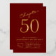 Célébrez votre 50e anniversaire avec style avec notre Invitation du 50e anniversaire du Chapitre 50! Ce design luxueux est orné d'un magnifique arrière - plan rouge avec un délicat motif en feuille d'or. Vous serez sûr d'impressionner vos invités avec cette invitation unique et élégante. Que vous souhaitiez suivre le parcours traditionnel ou faire une déclaration, cet invitation veillera à ce que votre 50e anniversaire soit celui que vos invités n'oublieront jamais !
