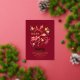Nouvel an chinois 2024 Année du dragon rouge foncé et or élégant floral photo lunaire nouvelle année invitation, illustration moderne. OEuvre originale de Caroline Bonne Müller