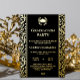 Élégante Foil Frame Graduation Invitation, Personnalisez l'invitation de diplôme en noir et or en ajoutant le nom et les détails du diplômé.