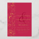 Une élégante invitation au mariage avec des oeuvres d'art florales en feuille d'or. Ce magnifique design présente une police serif formelle imprimée avec du papier à papier. Le design est accompagné d'une esperluette rouge foncé qui encadre si joliment les noms de la mariée et du marié. Invitation élégante Viva Magenta Mariage Gold Foil.