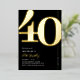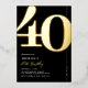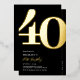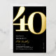 Véritable feuille noir et or 40e anniversaire invitations de fête avec le numéro '40' dans une grande police serif audacieuse, et un modèle invitation moderne qui est facile à personnaliser.