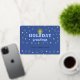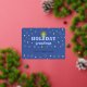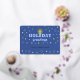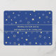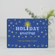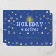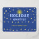 Cette carte a un fond bleu foncé, une dispersion d'étoiles, et dit "Meilleurs vœux pour les fêtes" sur le devant. Le 'i' de "Holiday" est une bougie qui brille intensément. Le message en feuille d'or "De notre famille à la vôtre" peut être modifié pour votre propre message de vœux. Au dos se trouve une dispersion similaire d'étoiles, et un texte prêt à être personnalisé avec votre propre message. (Ou vous pouvez utiliser le message par défaut "Nous vous souhaitons lumière, joie et bonheur pour la nouvelle année !")